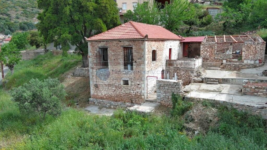 Natursteinhaus im traditionellen Stil mit uneingeschränkten Blick auf das antike Messina in Ithomi.