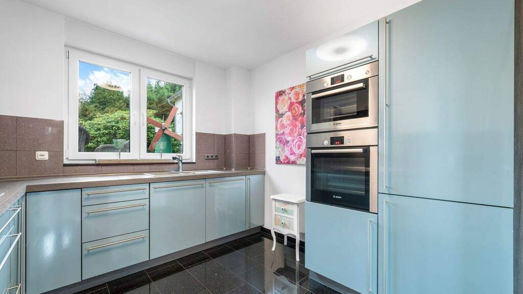 Dieses stilvolle Einfamilienhaus, erbaut 2015 und fertiggestellt 2017, bietet auf ca. 132,33 m² Wohn- und Nutzfläche (davon ca. 123,56 m² Wohnfläche) über drei Etagen ein komfortables Zuhause für ein Paar auf einem ca. 238 m² großen Grundstück. Aufgrund der Aufteilung ist die Immobilie nicht für Familien mit Kindern geeignet. Aufteilung der Immobilie: Erdgeschoss: Beim Betreten des Hauses empfängt Sie ein offener Eingangsbereich, der derzeit als Büro genutzt wird und sich ideal für ein Home-Office eignet. Zusätzlich befinden sich auf dieser Ebene ein Gäste-WC mit dahinterliegendem Abstellraum unter der Treppe, der Heizungsraum mit einem Anschluss für die Waschmaschine sowie eine weitere Tür, hinter der sich die Hausanschlüsse (Wasseruhr, Gaszähler etc.) verbergen. Obergeschoss: Hier finden Sie ein helles, offenes Wohn- und Esszimmer mit Zugang zur seitlich gelegenen Terrasse (Straßenseite) sowie die Küche. Diese stammt von Ostermann und ist ausgestattet mit Spülmaschine, Backofen, Ceranfeld mit Dunstabzugshaube, Dörrautomaten sowie Kühl- und Gefrierschrank. Dachgeschoss: Das Dachgeschoss überzeugt mit einem hellen Schlafzimmer, einem Ankleidebereich und Zugang zum Balkon sowie einem Badezimmer mit bodentiefer Dusche, Badewanne, Waschtisch und WC. Die Aussparungen unterhalb des Fensters bieten zusätzlichen Platz für Dekoration. Durch die großen Fenster in allen Räumen gelangt reichlich Tageslicht in die Immobilie. Die dreifach verglasten Kunststofffenster von Polartherm mit Isolierverglasung und Außenverspiegelung bieten tagsüber maximale Privatsphäre – ganz ohne Vorhänge. Der Außenbereich ist vollständig gepflastert, pflegeleicht und verfügt über keine Rasenflächen. Weitere Informationen und Fotos erhalten Sie im Exposé. Füllen Sie hierzu bitte das Kontaktformular vollständig aus. Wir freuen uns auf Ihre Anfrage.