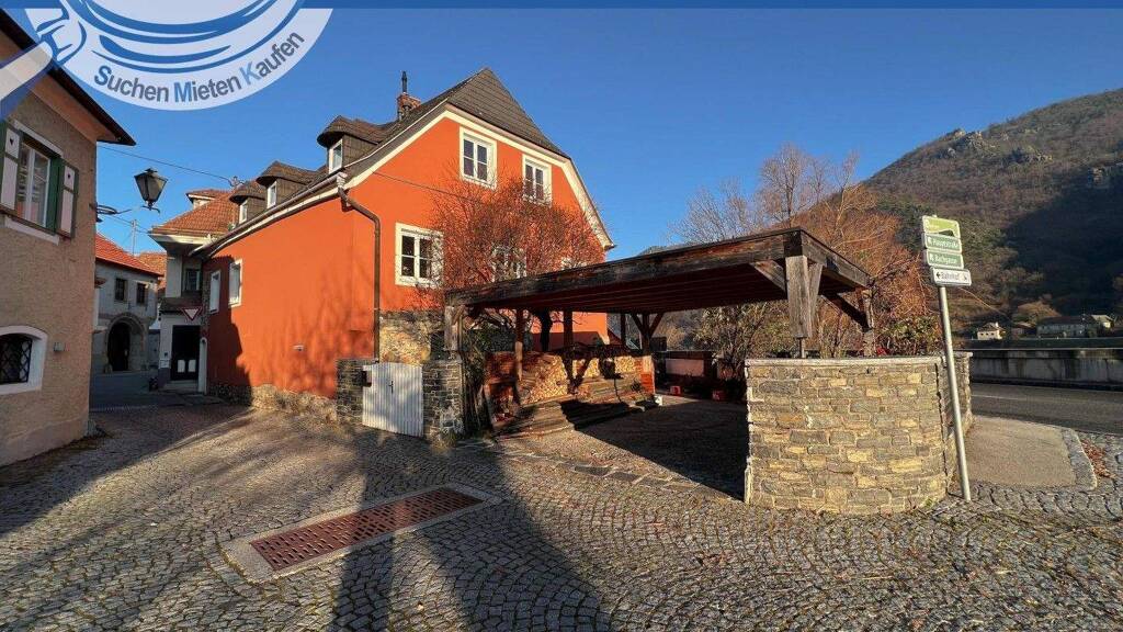 Eine massive Holztreppe führt in das Obergeschoss, wo sich 3 weitere Räumlichkeiten mit einem unverbaubaren Blick auf die Donau befinden - ein Panorama, das jeden Tag aufs Neue begeistert. Die Fenster sind neu und haben ein 3-faches Scheibe-Isolierglas.