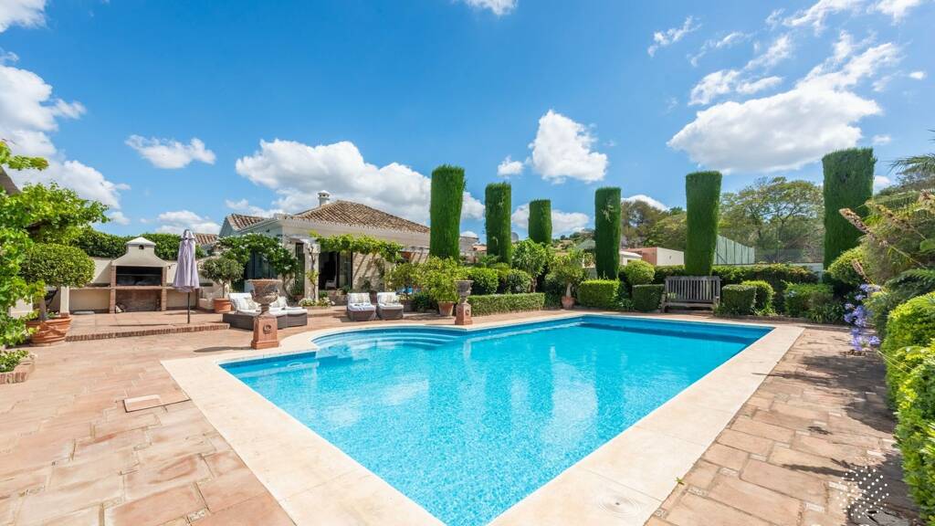 Pferdeland, Pololand und eine atemberaubende andalusische Landschaft prägen Los Gazapos. Dennoch ist dieses ruhige und einzigartige spanische 'cortijo' nur zehn Autominuten vom Mittelmeer und Sotogrande entfernt. Sie nähern sich dem Anwesen (knapp 8 Hektar) durch eine hübsche Landschaft und Polofelder und betreten es durch ein elektrisches Tor, das mit einer Tastatur und einer Gegensprechanlage für Mobiltelefone ausgestattet ist. Die Auffahrt führt Sie dann zum Haus, das Sie durch einen klassischen andalusischen Innenhof mit einem Carport betreten.