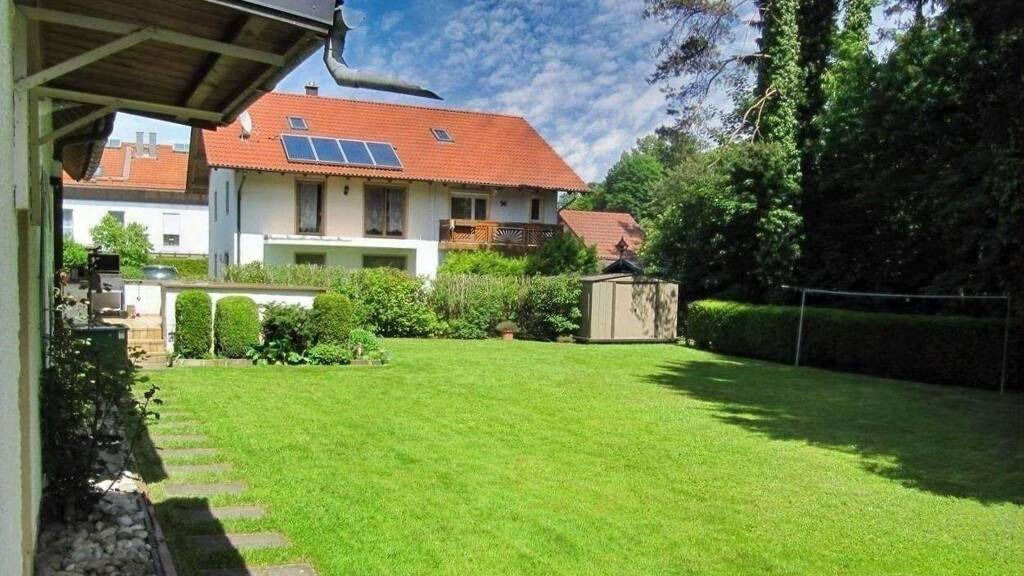 Das angebotene Zweifamilienhaus steht auf einem 1.022 m² großen Grundstück und liegt direkt am Stadtpark Waldkraiburg.