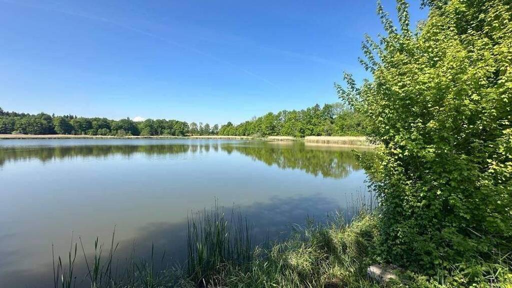 Wiesen, Felder, der Nahe Badeweiher mit idyllischen Badeplätzen bieten das malerische Umfeld dieses Anwesens.