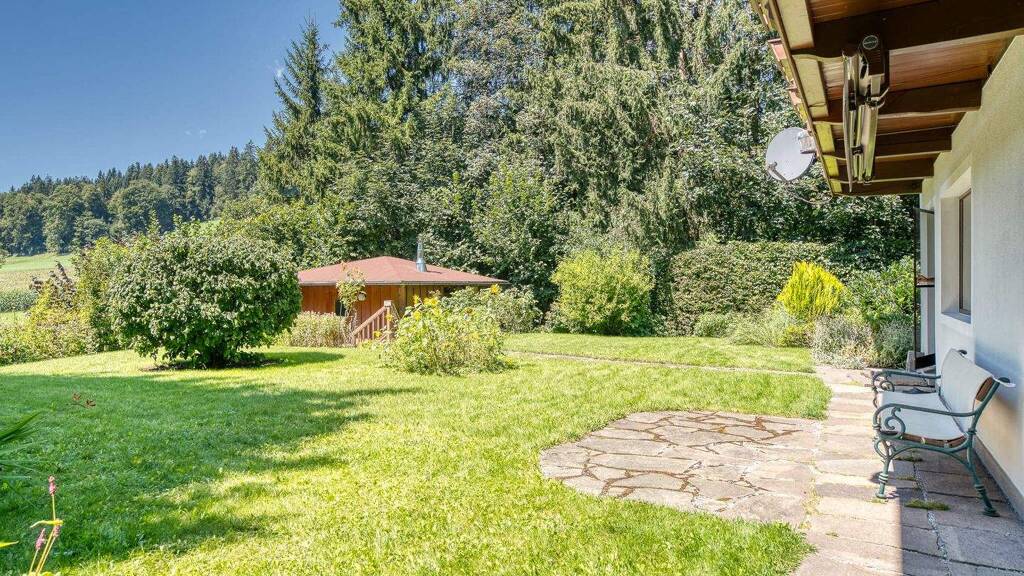 Zwischen grünen Wiesen in unverbauter Aussichtslage liegt dieser wonnigliche Freizeitwohnsitz auf einem von der Sonne begünstigten Hochplateau.
