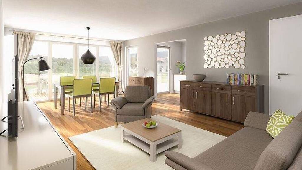 Auf rund 78 Quadratmetern finden Sie dank cleverer Planung ausreichend Platz für die ganze Familie. In den hellen, großzügig geschnittenen Zimmern wohnen Sie auf einer Ebene mit der Natur. Ob Wohnzimmer, Küche oder Schlafzimmer - überall sind Sie nur einen Schritt von Ihrem Garten entfernt.