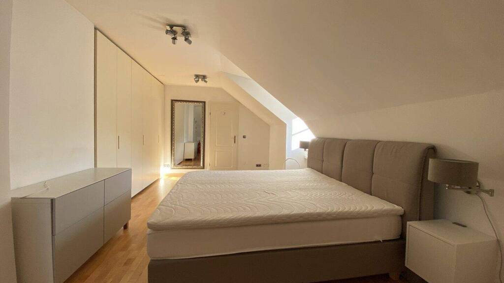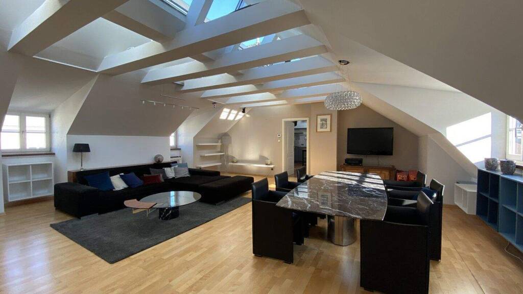Durch einen offenen Dachstuhl mit Glaselementen wird den Räumlichkeiten nicht nur Helligkeit verliehen, sondern auch der besondere Charme der Wohnung unterstrichen.