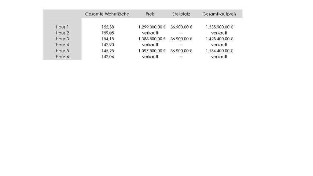 Der Kaufpreis setzt sich wie folgt zusammen: Kaufpreis Reiheneckhaus 1.299.000 Euro + 36.900 Euro Garage = 1.335.900 Euro Gesamtkaufpreis.