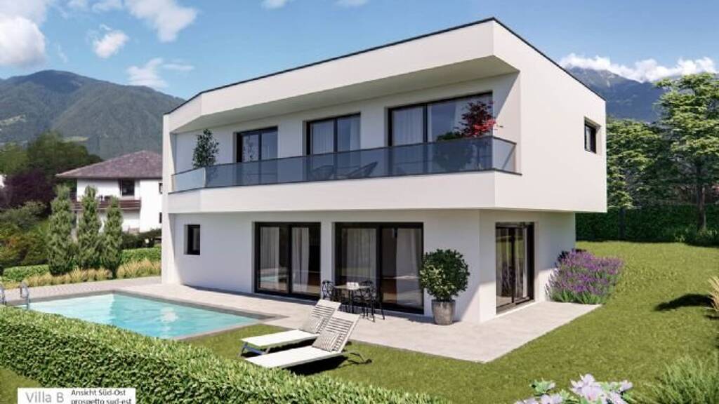In sonniger ruhiger Villenlage mit einem wunderschönen Traumblick auf das umliegende Meran, realisiert der Bauträger Rohrer Immobilien die zwei freistehenden autonome Luxusvillen mit Schwimmbad und eine Zweifamilienvilla mit zwei getrennten Wohneinheiten „Villa Montis“. Energiestandart - Klima Haus A