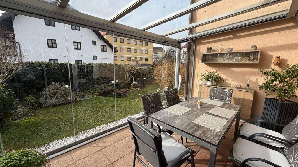 Die der Leibrente zugrunde liegende Immobilie befindet sich in einer ruhigen und gepflegten Wohnanlage in Freilassing und wurde im Jahr 2004 errichtet. Es handelt sich um eine Erdgeschosswohnung mit einer Wohnfläche von rund 62 Quadratmetern, die durch einen großzügigen Wintergarten mit Frontverglasung und einer großzügigen Terrasse mit Gartenanteil im Sondernutzungsrecht ergänzt wird. Darüber hinaus stehen zusätzliche wohnlich nutzbare Flächen im Untergeschoss mit rund 25 Quadratmetern zur Verfügung. Die Wohnung umfasst zwei Zimmer, bestehend aus einem Schlafzimmer und einem Wohnbereich mit direktem Zugang zu den Außenflächen, sowie ein modern ausgestattetes Badezimmer.