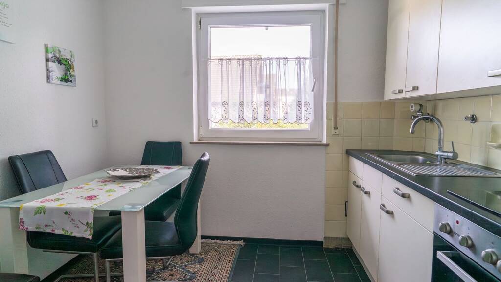 Die Wohnung hat eine optimale Raumaufteilung. Über dem geräumigen Flur, welcher zusätzliche Möglichkeiten für Garderobe und Schrankelemente bietet, gelangt man zu den großzügig geschnittenen Räumlichkeiten. An das Wohnzimmer schließt der Balkon mit Blick in den Garten und optimaler Ausrichtung an. Das TL-Badezimmer wurde mit Badewanne ausgestattet und in zeitlosem Dekor versehen. Die Küche bietet ausreichend Platz, um eine großzügige Essecke zu stellen. Das Küchenmobiliar sowie die Elektrogeräte sind dem Mieter zugehörig. Die Böden wurden in allen Räumlichkeiten vor einigen Jahren mit Kunststoffboden ausgelegt.