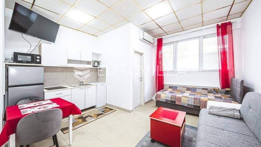 Zagreb, Tresnjevka, poslovni prostor povrsine 54 m², smjesten u prizemlju uredno odrzavane zgrade iz 2009. godine.Prostor je podijeljen u dva funkcionalna dijela, s ulazima sa sjeverne i juzne strane.Prvi dio trenutno je ureden kao potpuno opremljen jednosobni stan s kuhinjom, spavacim dijelom i modernom kupaonicom s tus kabinom - idealan za boravak ili lako prilagodljiv za uredske potrebe, odnosno povezivanje s drugim dijelom prostora.Drugi dio je trenutno ureden kao ured, s dodatnim sanitarnim cvorom i prostorom za pohranu. U svakoj prostoriji nalazi se klima uredaj, sto osigurava ugodan radni ili zivotni ambijent tijekom cijele godine.Nalazi se na odlicnoj lokaciji na Tresnjevci, u neposrednoj blizini javnog prijevoza, trgovina, kafica i ostalih sadrzaja.Parkiranje je osigurano kod zgrade - jedno parkirno mjesto po stanu. Prostor pruza izvrsnu priliku za poslovne korisnike, investitore ili privatne potrebe, s mogucnoscu prilagodbe razlicitim namjenama.Za sve ostale informacije stojimo Vam na raspolaganju.... Vise na eurovilla.hr, ID: 643640