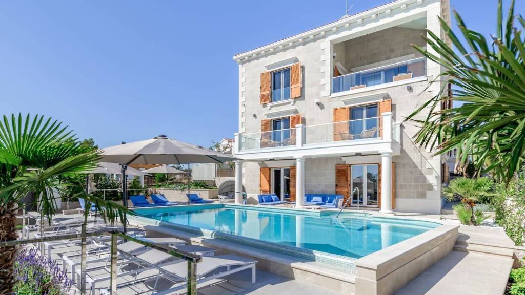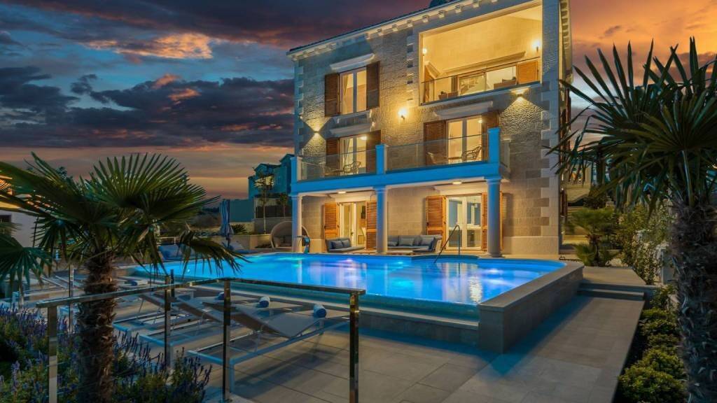 Die gesamte Außenfassade der Villa besteht aus 3 Arten von handbehauenem Stein, das Werk der besten Steinmetze der Insel Brac