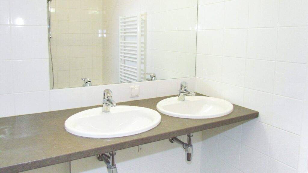 Die moderne Küche verfügt über ein Ceran-Kochfeld und Backofen, sowie einen Geschirrspüler und Kühlschrank mit Gefrierfach. Der Wohnbereich ist mit schönen Parketten und der Sanitärbereich mit zeitlosen Fliesen versehen. Die Badezimmerausstattung bietet ein Doppelwaschbecken, einen Waschmaschinenanschluss und eine Badewanne.