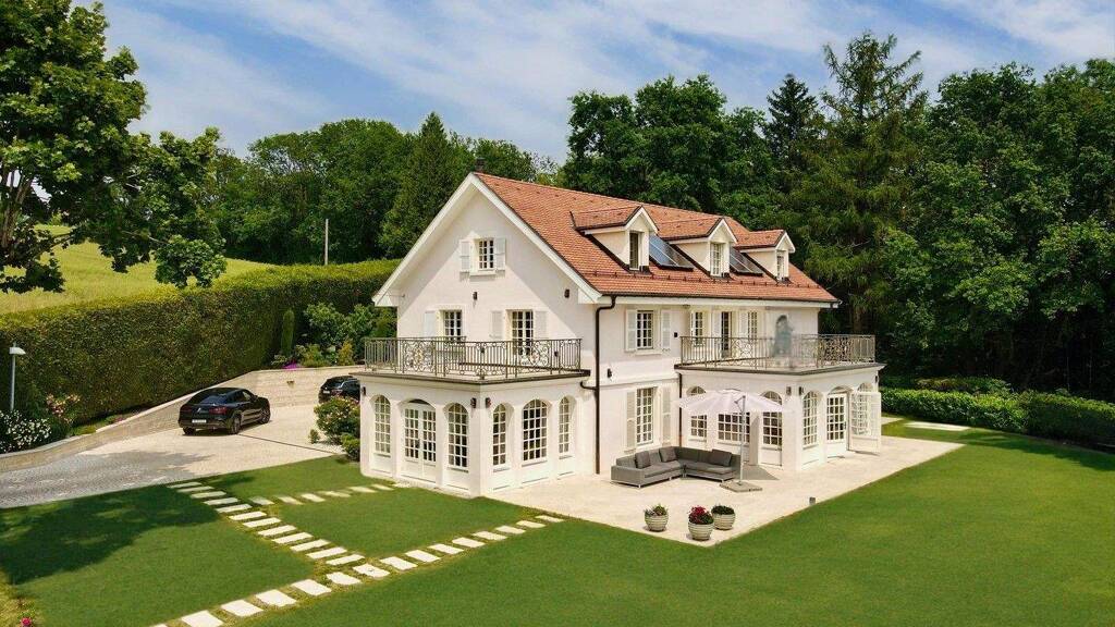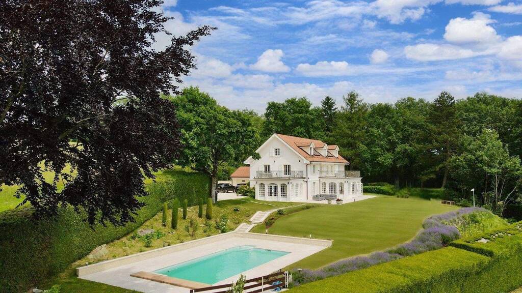 Die Residenz liegt auf einem großen, wunderschön angelegten Grundstück ohne unmittelbare Nachbarn und bietet einen atemberaubenden Panoramablick auf den Genfer See und die Alpen. Ein privates Waldstück trägt zum Charme bei, wo ein diskretes, unabhängiges Nebengebäude die perfekte Unterkunft für ein Kindermädchen oder einen Bodyguard bietet.