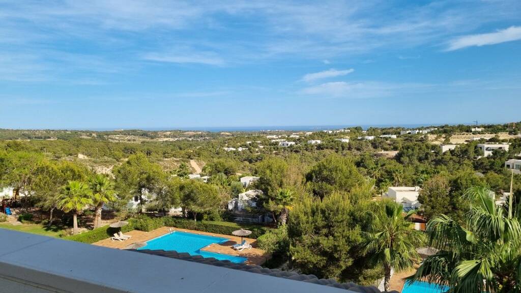 Das Penthouse selbst bietet einen atemberaubenden Blick auf die wunderschöne Umgebung des mediterranen Waldes, das Mittelmeer und auf den Gemeinschaftspool.