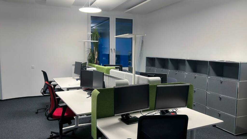 Aktuell stehen Ihnen mehrere unserer modernen, vollmöblierten Büros mit bis zu fünf Arbeitsplätzen zur Verfügung.