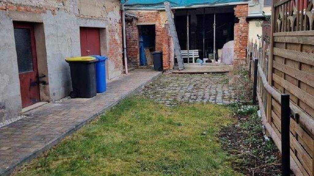Zum Haus gehört weiterhin ein kleiner Hinterhof mit Grünfläche und Nebengebäude.