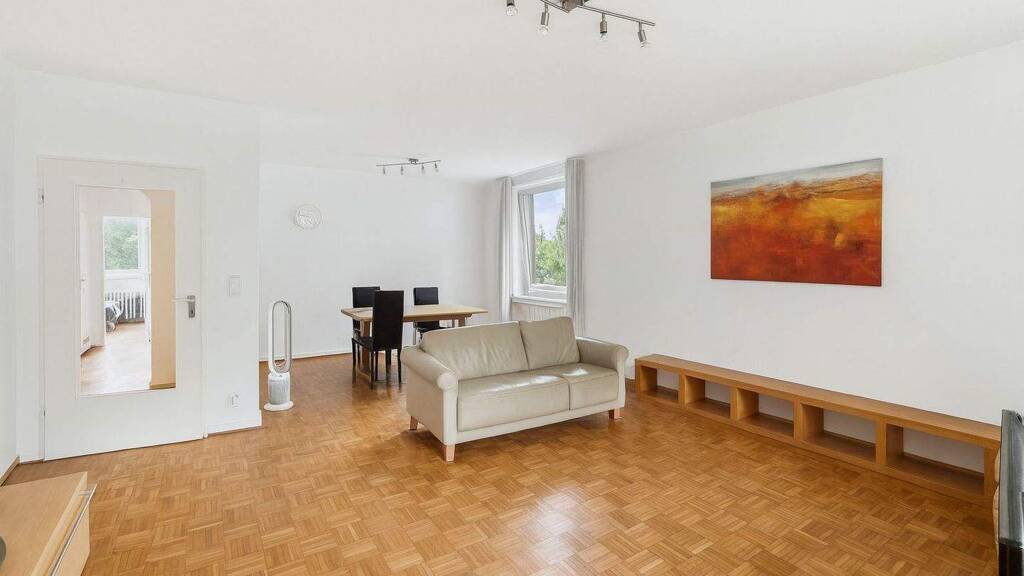 Diese charmante Etagenwohnung im 2. Obergeschoss aus dem Jahr 1967 überzeugt durch ihren praktischen Grundriss und eine Wohnfläche von ca. 89 m², die sich auf drei gut geschnittene Zimmer verteilt. Es bestünde die Möglichkeit, ein viertes Zimmer zu realisieren. Das einladende Entrée führt u.a. in den großzügigen Wohnbereich, der dank vieler Fensterfronten von Tageslicht durchflutet wird und eine freundliche Wohnatmosphäre schafft.