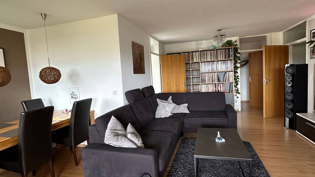 Wohn- und Essbereich: Ein sehr geräumiges Wohnzimmer mit separatem Essbereich und direktem Zugang zum Balkon.