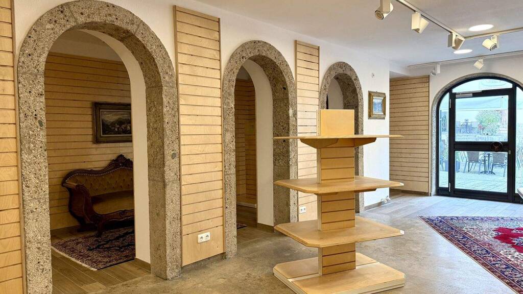 Beim Betreten der Räumlichkeiten wird man von einem großzügigen Eingangsbereich empfangen, der mit seinem historischen Charme überzeugt. Durch die großen Fenster fällt viel Tageslicht in die Verkaufsfläche und schafft eine angenehme Arbeitsatmosphäre. Die einzelnen Verkaufsbereiche sind großzügig gestaltet und bieten ausreichend Platz für Präsentationen und Kundeninteraktion.