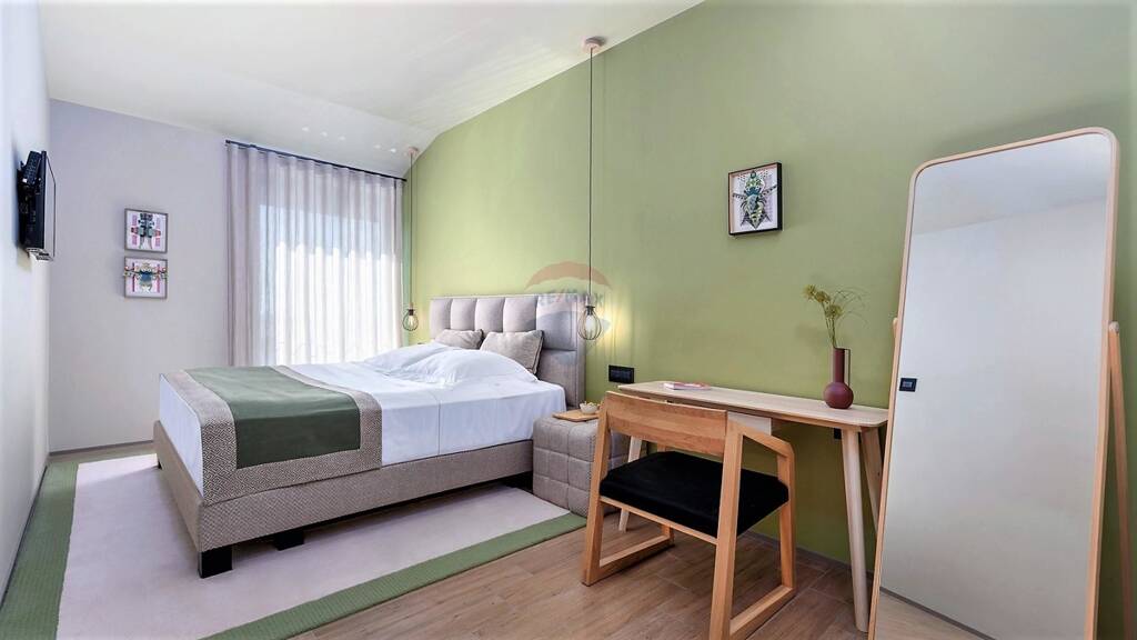 Die Villa wurde mit qualitativ hochwertigen Möbeln, Geräten, einzigartigen Details und Beleuchtung ausgestattet. Die Heizung und Kühlung des Hauses erfolgt über eine Fußbodenheizung.