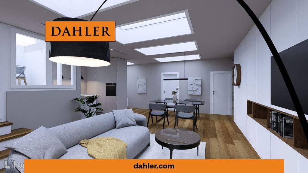 . First-time occupancy after high-quality loft conversion . Approx. 73 m² living space . Spacious, open-plan living/dining area . Exceptional atrium . Impressive water view of the Havel . Spacious bathroom and separate guest WC . Designer sanitaryware and large-format tiles . High-quality real wood parquet flooring in all living areas . Underfloor heating throughout the apartment . Skylights for daylight . High-quality electrical and lighting installations . Network and TV connections in all living rooms and bedrooms . Preparation for fitted kitchen with all connections . Central location with walking distance to streetcar, bus and train . Bicycle and cargo bike parking spaces on the property . KfW energy-efficient construction standard . Central and highly sought-after location . Stores for daily needs in the immediate vicinity . Very good public transport connections (Charlottenhof station is a 5-minute walk away) . With the RE in approx. 30 minutes to Kurfürstendamm & Berlin main station . BER airport in approx. 40 min.
