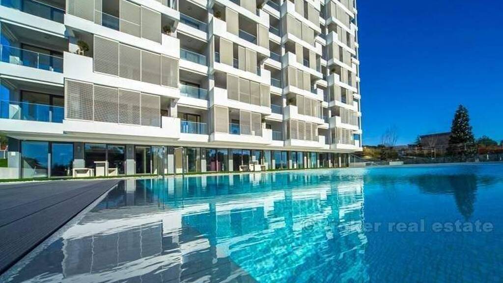 Die Wohnung ist vollständig nach Süden ausgerichtet, hat 82 m und strahlt Luxus aus ein geräumiges Wohnzimmer mit viel natürlichem Licht, eine hervorragend ausgestattete Küche mit modernen Geräten, ein sorgfältig gestaltetes Badezimmer und ein komfortables Schlafzimmer mit eigenem Bad schaffen ein harmonisches Interieur, das den höchsten ästhetischen und Wohnstandards entspricht. Das zweite Schlafzimmer mit Doppelbett hat Zugang zur Terrasse.