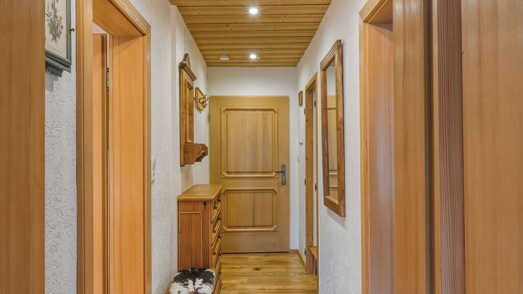 Die vorliegende Maisonette-Wohnung präsentiert sich als vollständig modernisiertes, sofort beziehbares Wohnobjekt mit einer Gesamtwohnfläche von ca. 77 m², die sich auf zwei eigenständige Ebenen verteilt. Die konsequente Südwest-Ausrichtung gewährleistet eine ganztägige Besonnung sämtlicher Hauptaufenthaltsräume und schafft ein außergewöhnlich lichtdurchflutetes Wohnambiente mit unverbautem Panoramablick in die alpine Landschaft.