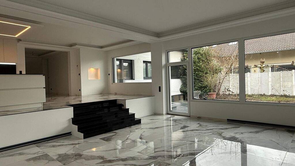 Erstbezug einer von Grund auf sanierten, enorm großzügigen Eigentumswohnung in Stil eines Einfamilienhauses auf insgesamt 2 Ebenen, mit eigenem Garten, einer Terrasse, einer Doppelgarage, einem Kfz-Stellplatz und einem großen Wellnessbereich, in hochwertigster Neubau-Ausstattung. Es handelt sich um eine Erdgeschosswohnung mit eigenem Straßeneingang und einer internen Verbindung zu den Untergeschossflächen, innerhalb eines Dreiparteienhauses. Aufgrund der Miteigentumsanteile dieser Einheit, verfügt der Eigentümer dieser Wohnung, über die Mehrheit innerhalb der Eigentümergemeinschaft.