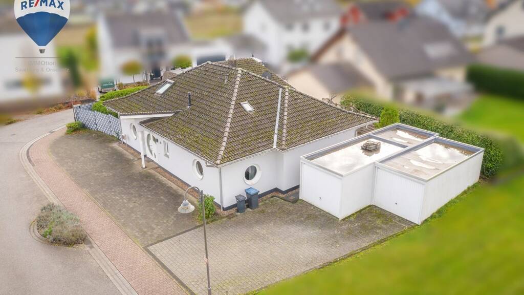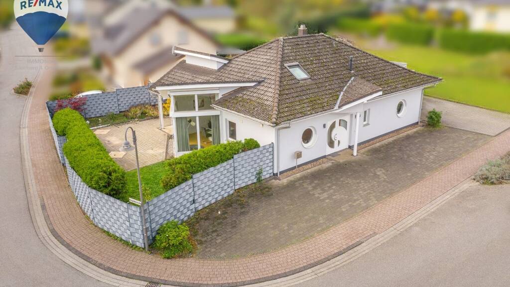 Dieser Bien-Zenker-Bungalow aus 2005 verbindet modernes EG-Wohnen mit klaren Linien und viel Licht. Mittelpunkt ist der großzügige Wohn-Essbereich mit raumhoher Verglasung und Raffstoreverschattung, gemütlichem Kaminofen und der hochwertigen ALNO-Küche mit Granitplatte. Der private Schlaftrakt liegt separat, sodass Alltag und Rückzug angenehm getrennt sind. Auf der kompletten Erdgeschossebene stehen ca. 139,2 m² zur Verfügung, gegliedert in einen weitläufigen Wohn-Ess-Kochbereich, zwei Schlafzimmer und ein flexibles Zimmer für Büro/Gast, Diele mit Gäste-WC sowie Hauswirtschaft/Technik. Die umlaufende Eck-Terrasse erweitert den Wohnraum in den Garten. Das Hauptbad präsentiert sich hochwertig und zeitgemäß: eine komfortable Eckbadewanne, eine begehbare Dusche, dazu ein elegantes Waschtisch- und WC-Ensemble. Das Gäste-WC im Eingangsbereich ist separat angeordnet und modern ausgestattet. Im Dachgeschoss ergänzen drei ausgebaute und beheizte Hobbyräume mit Dachflächenfenstern und elektrischer Beschattung den Nutzwert. Sie zählen rechtlich nicht zur Wohnfläche, sind aber ideal für Homeoffice, Fitness oder Gäste. Das Grundstück ist pflegeleicht angelegt und eingefriedet. Große, gepflasterte Vorflächen vor und neben den zwei Fertiggaragen sorgen für reichlich Parkraum; die zum Haus gelegene Garage bietet einen zusätzlichen Abstellraum. Die ruhige Neubausiedlung ist in den letzten rund 25 Jahren gewachsen und bietet ein gepflegtes, homogenes Umfeld. Fazit: Der Bungalow eignet sich besonders für Paare und Familien sowie Käufer, die komfortables Wohnen auf einer Ebene schätzen. Großzügiger, lichtdurchfluteter Wohn-Essbereich, separater Schlaftrakt für Ruhe und Privatsphäre sowie pflegeleichter Garten und praktische Garagenflächen verleihen dem Haus einen entspannten und modernen Wohnkomfort.
