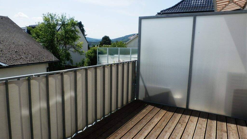 - den südseitigen, schöne Fernsicht ermöglichenden Balkon mit elektrischer Markise, Wasseranschluss und Außensteckdose