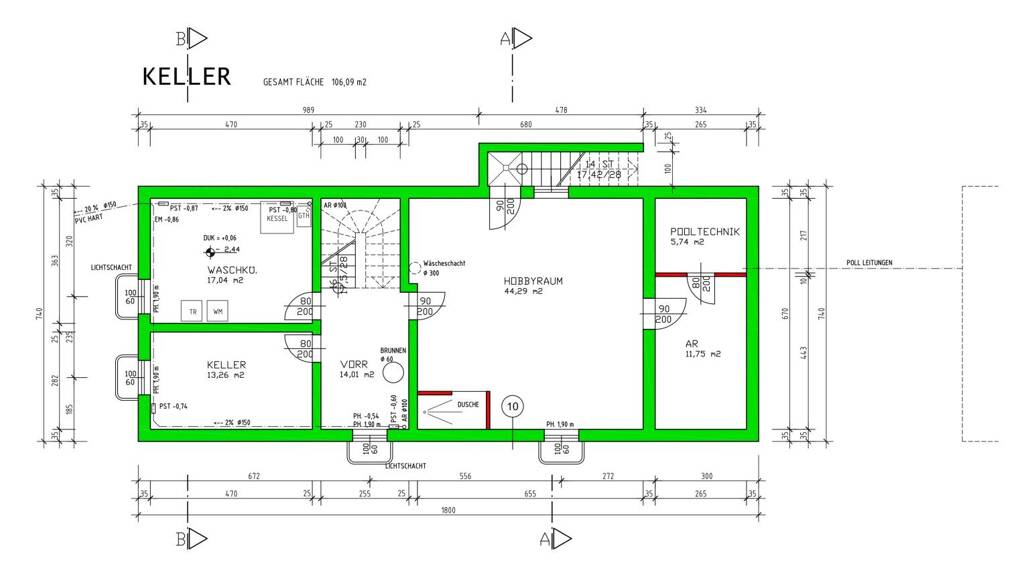 - ein 44,29 m2 großer Hobbyraum mit Zugang zum Garten