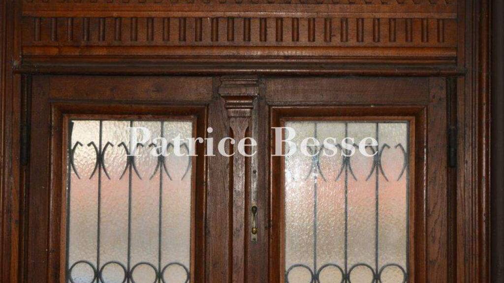 A double door, glazed, fitted with a wrought-iron grate and set in an arched doorway, leads into a spacious dual-aspect hallway that leads out to the garden at the back. A staircase winds upstairs with a wooden handrail and wooden steps. The balustrade is made of wrought iron. These stairs lead up to the first floor. To the left of the hallway, there is a reception room made up of two open lounge spaces. The decor here is original. The reception room features two fireplaces and ceilings with ceiling roses, mouldings and a ceiling painting in one of the two spaces. To the right of the hallway, there is a kitchen and an adjoining dining room. A corridor with dado panelling connects to a room with cupboards closed with tall wooden doors and to a shower room with a lavatory. A long room with a mezzanine completes the ground floor. This dual-aspect room can be reached from outside. It leads to the conservatory and to the garden. It could be turned into a self-contained studio apartment. Oak chevron parquet extends across the rooms on the ground floor. The hallway floor is adorned with cement tiles. There are cast-iron radiators sculpted with cat ears.