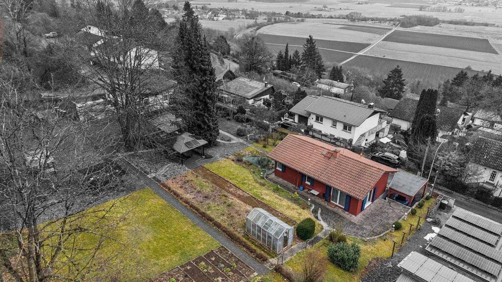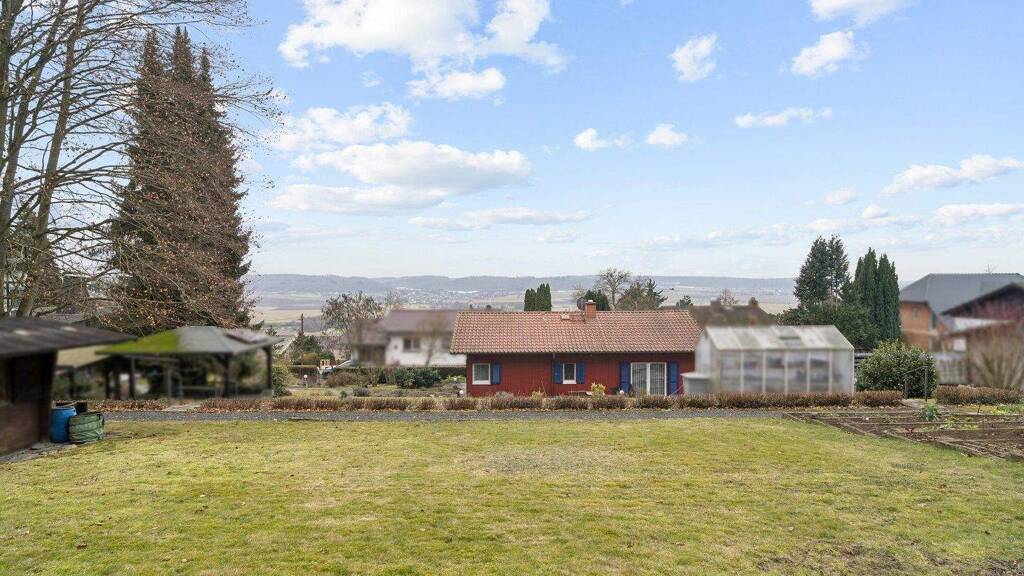 Das großzügige Grundstück - aktuell in Teilung - wird künftig eine Fläche von ca. 1.000 m² umfassen. Der Außenbereich bietet vielfältige Nutzungsmöglichkeiten: Eine großzügige Terrasse lädt zum Verweilen ein, ein Gartenteich setzt einen besonderen Akzent und ein Gewächshaus bietet Raum für Hobbygärtner. Die erhöhte Ortsrandlage mit freiem Ausblick verleiht dem Grundstück eine besondere Qualität.