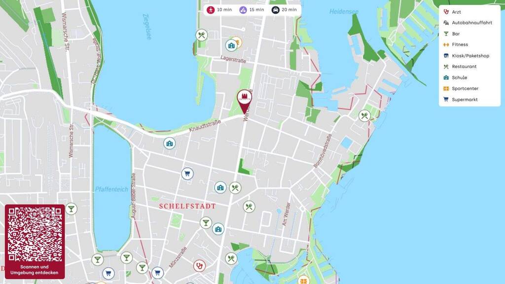 Freizeit-, Sport- und Erholungsmöglichkeiten befinden sich im nahen Umfeld und erhöhen sowohl den Wohnkomfort für Eigennutzer als auch die Attraktivität für eine dauerhafte Vermietbarkeit. Die Nähe zu Bildungseinrichtungen wie der Designschule Schwerin und der ecolea - Internationalen Schule Schwerin spricht zusätzlich eine breite Zielgruppe an.