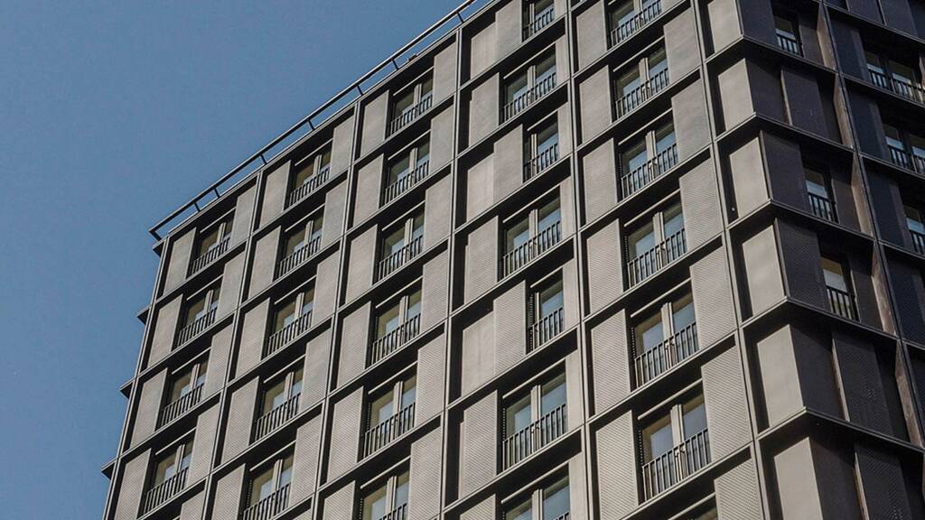 Kurzbeschreibung Das elegant gestaltete, 65 Meter hohe Wohnhochhaus von den Architekten Jabornegg & Pálffy besticht durch seine bodentiefen Fenster und Schiebeläden - die jeweils die Funktion des Blend- oder Sonnenschutzes übernehmen. Der individuelle Gebrauch der Lochblechläden fördert ein differenziertes Fassadenbild innerhalb einer sehr regelmäßigen Gliederung. Objekt Das elegant gestaltete, 65 Meter hohe Wohnhochhaus von den Architekten Jabornegg & Pálffy besticht durch seine bodentiefen Fenster und Schiebeläden - die jeweils die Funktion des Blend- oder Sonnenschutzes übernehmen. Der individuelle Gebrauch der Lochblechläden fördert ein differenziertes Fassadenbild innerhalb einer sehr regelmäßigen Gliederung.