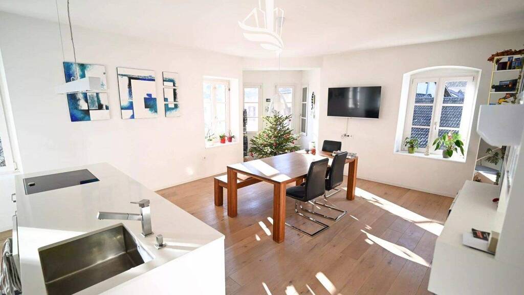 Zum Verkauf steht eine moderne 4-Zimmerwohnung im zweiten Obergeschoss eines historischen Gebäudes im lebendigen Ortskern von St. Pauls - Eppan.