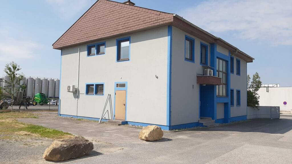 Hartberg: Bürogebäude im Industriegebiet zu vermieten. EG: 1 Besprechungsraum und 2 Büroräume bzw. 1 Küche und 2 WC sowie Technikraum. OG: 1 Besprechungsraum und 5 Büroräume sowie 2 WC und eine Küche. 3 MM Kaution / 2 MM Vermittlungshonorar zzgl. Ust.