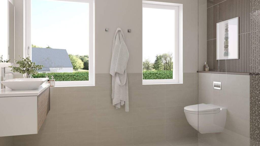 Das Badezimmer ist stilvoll ausgeführt, ein separates Gäste-WC ergänzt den Grundriss und erhöht den Wohnkomfort spürbar. Ein zusätzlicher Abstellraum schafft praktischen Stauraum direkt in der Wohneinheit.