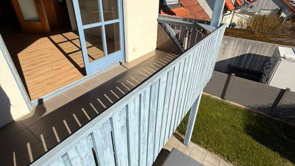 Im Obergeschoss bildet das helle Wohnzimmer mit direktem Zugang zum Balkon den zentralen Wohnbereich. Die separate Wohnküche bietet ausreichend Platz für einen Essbereich. Zwei gut geschnittene Schlafzimmer ermöglichen flexible Nutzungsmöglichkeiten, beispielsweise als Kinder-, Gäste- oder Arbeitszimmer. Das moderne Badezimmer ist mit einer begehbaren Dusche ausgestattet. Ergänzend steht ein praktischer Abstellraum zur Verfügung.