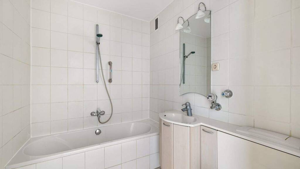Das innenliegende Badezimmer ist mit einer Badewanne und einem Handtuchheizkörper ausgestattet. Zudem ist in der Wohnung ein separates Gäste-WC vorhanden.