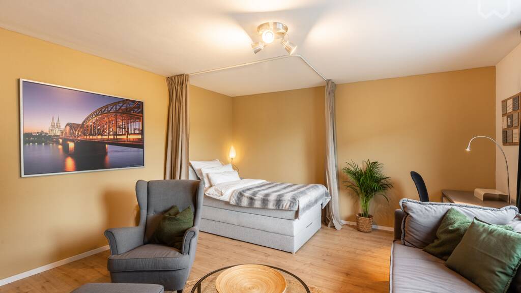 Die nächsten Supermärkte sind 2-5 Minuten zu Fuß entfernt bieten jegliche Vielfalt. Kiosk, Friseur, Paketshop, Fitnessstudio und Tankstelle direkt um die Ecke. Die Köln Arkaden sind als nächste Shopping Mall ebenfalls in der näheren Umgebung.