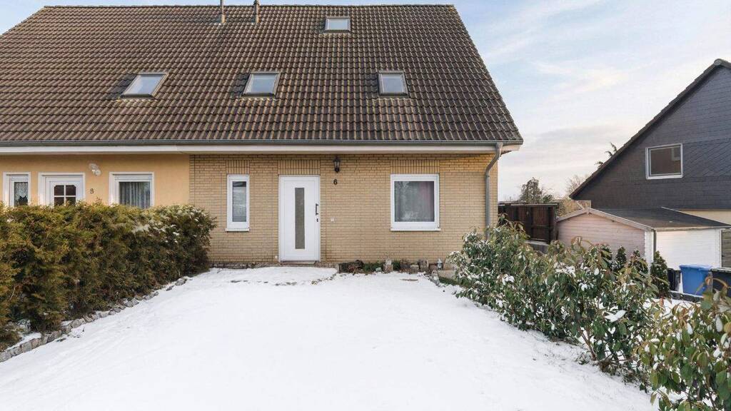 Die im Jahr 1998 errichtete Doppelhaushälfte präsentiert sich als gepflegtes Einfamilienhaus in ruhiger Wohnlage und bietet auf ca. 107 m² Wohnfläche ein komfortables und gut durchdachtes Zuhause für Paare oder kleine Familien. Der ansprechende Grundriss umfasst drei helle Zimmer sowie einen praktischen Hauswirtschaftsraum und wird durch eine zusätzliche Nutzfläche von rund 10 m² sinnvoll ergänzt. So steht ausreichend Platz für den Alltag, individuelle Wohnideen und Stauraum zur Verfügung. Im Erdgeschoss unterstreichen überwiegend geflieste Böden den gepflegten Gesamteindruck und sorgen für eine pflegeleichte, zeitlose Optik, während im Obergeschoss Laminatböden eine warme und wohnliche Atmosphäre schaffen. Doppelt verglaste Fenster mit Außenrollläden im Erdgeschoss bieten einen guten Wärme- und Schallschutz und tragen zugleich zu einem erhöhten Wohnkomfort und Sicherheitsgefühl bei. Ein besonderes Highlight ist der vorhandene Kago-Kamin, der an kühleren Tagen für behagliche Wärme sorgt und dem Wohnbereich eine gemütliche, einladende Note verleiht. Vom Wohnbereich gelangen Sie direkt auf die Terrasse und in den überschaubaren Garten, der sich ideal für entspannte Stunden im Freien, gärtnerische Gestaltung oder als Spielfläche für Kinder eignet. Das ca. 273 m² große Grundstück wird durch zwei Pkw-Stellplätze direkt am Haus ergänzt. Insgesamt überzeugt diese Immobilie durch ihre gepflegte Erscheinung, eine angenehme Wohnatmosphäre und ein stimmiges Gesamtpaket für alle, die ein ruhiges und komfortables Zuhause suchen.
