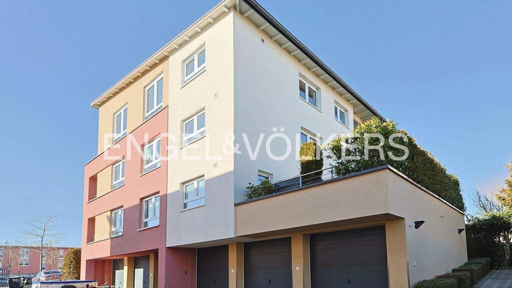Diese moderne und hochwertig ausgestattete 4-Zimmer-Wohnung befindet sich in einem gepflegten Mehrfamilienhaus (6 Parteien) aus dem Baujahr 2011 und überzeugt durch ihre durchdachte Raumaufteilung sowie ein helles, freundliches Wohnambiente und einer Deckenhöhe bis circa 3,5 Meter. Mit einer Wohnfläche von ca. 99 m² bietet sie ausreichend Platz für Singles, Paare oder Familien. Der großzügige Wohn- und Essbereich bildet das Herzstück der Wohnung. Große Fensterflächen sorgen für viel Tageslicht und schaffen eine offene, einladende Atmosphäre. Die angrenzende offene Küche ist harmonisch in den Wohnbereich integriert und bietet ideale Voraussetzungen für gemeinsames Kochen und geselliges Beisammensein. Vom Wohnbereich aus besteht direkter Zugang zum großzügigen Balkon mit einer Fläche von ca. 14 m², der zusätzlichen Raum im Freien bietet und zum Entspannen einlädt. Die Wohnung verfügt über insgesamt drei gut geschnittene Zimmer, die flexibel als Schlaf-, Kinder-, Arbeits- oder Gästezimmer genutzt werden können. In den Wohn- und Schlafräumen ist ein hochwertiger Parkettboden verlegt, der den Räumen eine warme und zeitlose Wohnqualität verleiht. Das Badezimmer präsentiert sich modern und funktional zugleich. Es ist sowohl mit einer Dusche als auch mit einer Badewanne ausgestattet und erfüllt damit unterschiedliche Komfortansprüche. Ergänzt wird dies durch ein separates Gäste-WC sowie einen praktischen Abstellraum. Eine klare Gestaltung unterstreichen den gepflegten Eindruck. Abgerundet wird das Angebot neben einem großen Kellerraum durch praktische Parkmöglichkeiten: Eine Garage - 25.000 € - sowie ein Stellplatz - 15.000 € - sorgen für komfortables und sicheres Parken. Insgesamt handelt es sich um eine sehr moderne, lichtdurchflutete Wohnung mit hochwertiger Ausstattung, einem großzügigem Balkon, tollen Blickachsen und einem attraktivem Grundriss.