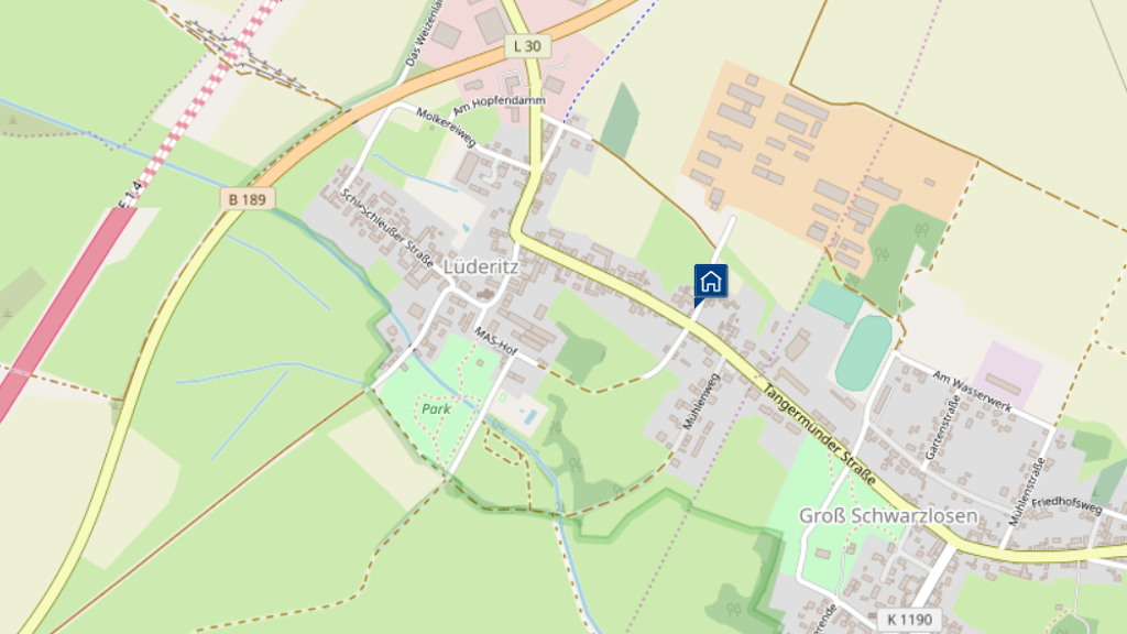 Sie queren die Bundesstraße 189 gelangen und gelangen in ca. 500 m zur Autobahnauffahrt der A14. Die Nordverlängerung der A14 befindet sich derzeit in der Planung. Ein erschlossenes Gewerbegebiet finden Sie direkt an der B189 in der Ortschaft.