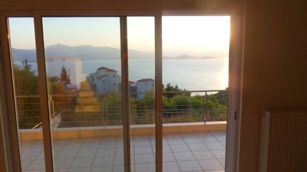 Neuwertiges Einfamilienhaus mit vielen Balkonen und mit Meerblick in einer Anhöhe von Theologos!