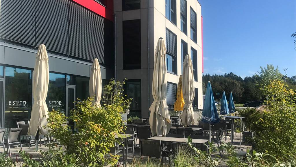 Als wesentlicher Bestandteil und Treffpunkt unseres Bürogebäudes erfreut sich das Bistro D4 seit 2019 großer Beliebtheit im Haus und dem gesamten Umfeld sowie bei vielen Stammkunden. Im Gewerbegebiet Gilching Süd ist das Restaurant eine Topadresse für alle umliegenden Firmen (mit Sonderflughafen Oberpfaffenhofen derzeit ca. 8000 Mitarbeiter).