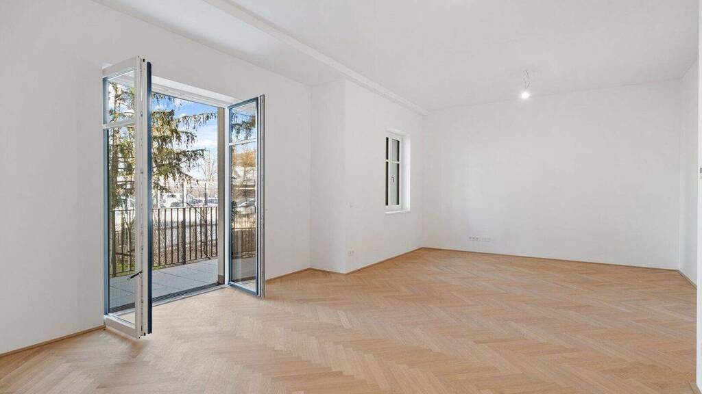 Diese exklusive 3 Zimmer Erdgeschoss-Wohnung ist sowohl nach Südwesten (2 Schlafzimmer mit Blick auf eine ruhige Seitengasse) als auch Nordosten (Wohnküche samt Balkon mit Blick zum Garten des Hauses) ausgerichtet. Die Wohnküche hat einen direkten Zugang zu einem ca. 9,5 m² Balkon.