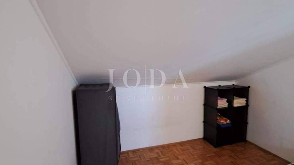 Die Wohnung erstreckt sich über das Erdgeschoss und das hohe Dachgeschoss eines Wohnhauses mit insgesamt vier Wohneinheiten. Die Wohnung hat einen Garten von 57m2 und zwei Parkplätze. Im ersten Stock befinden sich ein Wohnzimmer, eine Küche und ein Esszimmer sowie ein Badezimmer und eine Loggia. Eine Innentreppe führt in den zweiten Stock im Dachgeschoss, das aus drei Schlafzimmern und einer Toilette besteht. Die Wohnung ist komplett möbliert und ausgestattet und wird auch so verkauft. Es hat PVC Tischlerei und eine Klimaanlage auf jeder Etage. Heizen ist auch mit festen Brennstoffen möglich. Die Immobilie befindet sich in einer großartigen Lage nahe dem Zentrum von Krk und allen notwendigen Annehmlichkeiten. Gelegenheit!