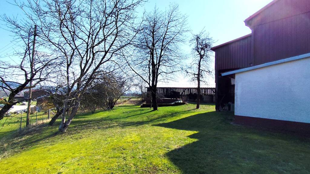 Dieses umfasst eine 33 m² große Werkstatt mit einer direkt angrenzenden ehemaligen Schreinerei (ca. 19 m²). Unmittelbar dahinter befindet sich eine geräumige Doppelgarage (ca. 30 m²) sowie eine zusätzliche Lagerhalle (ca. 30 m²) mit robustem Trapezblechdach.