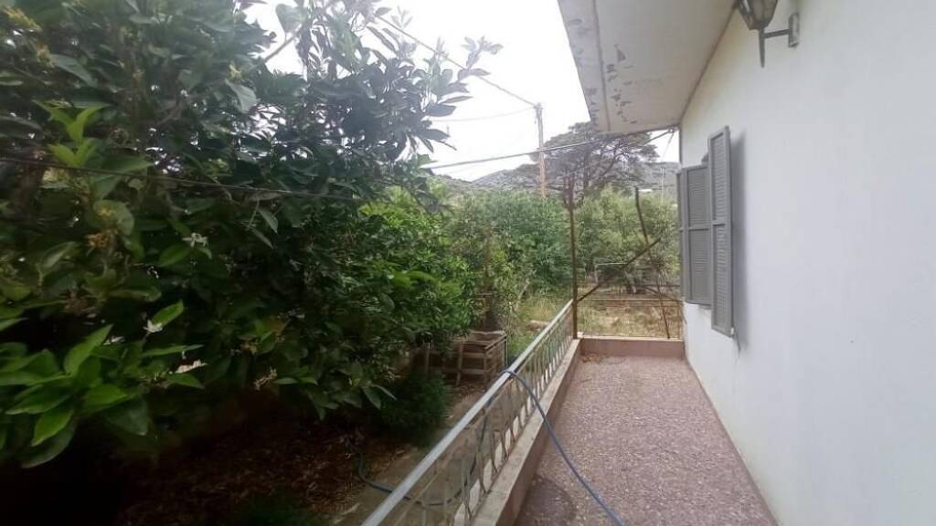 An der Vorder- und Rückseite des Hauses befinden sich reife Oliven-, Orangen-, Mandarinen-, Zitronen- und andere Obstbäume.